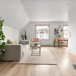 Charming Town House with a cozy loft Villa ligt op ongeveer 19 minuten te voet van de Domkerk van Tromsø en nodigt gasten uit om te ontspannen op een terras.
